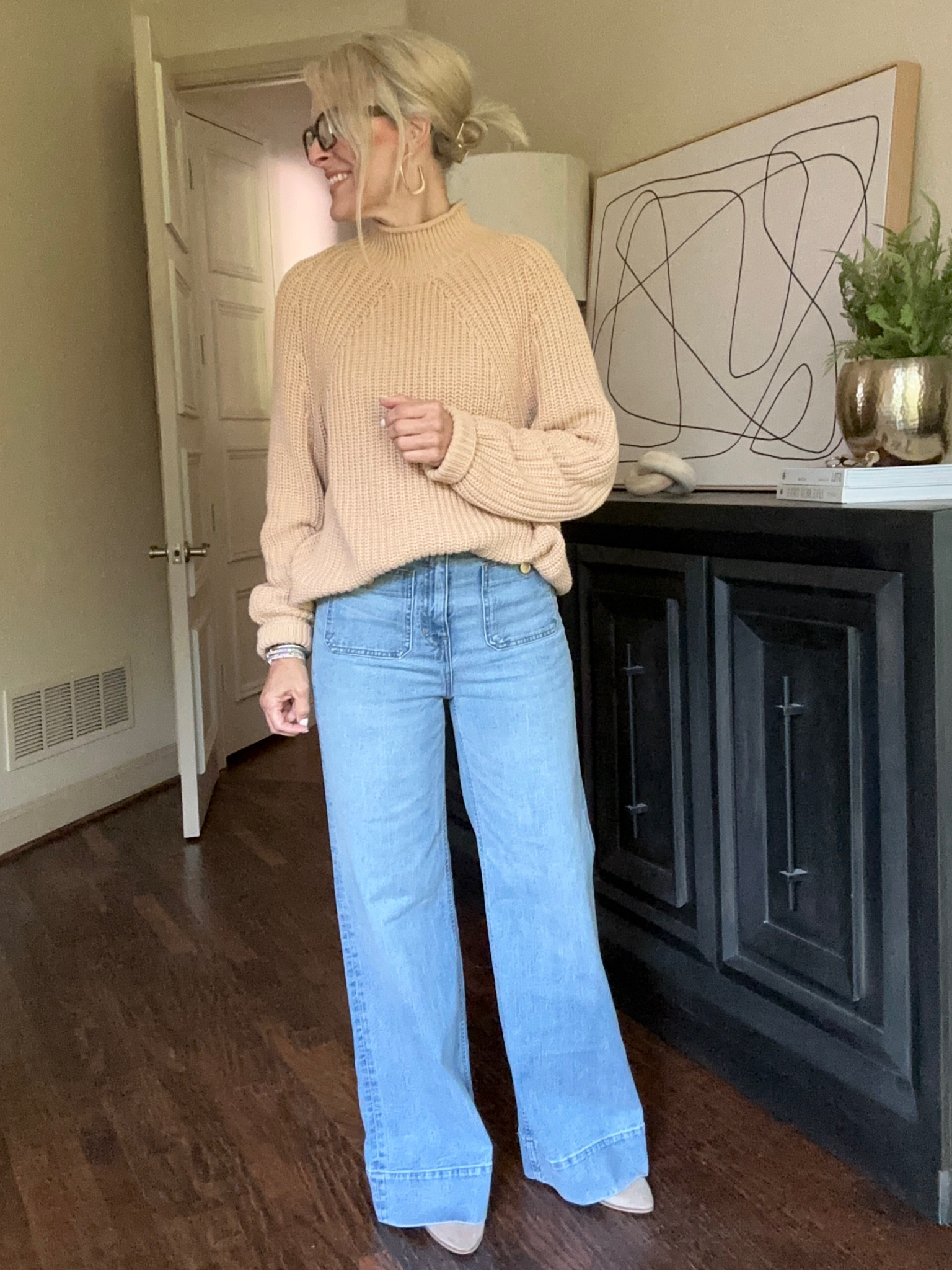 Crafted from premium denim fabric, our Sailor Wide Leg Trouser ensures durability and comfort throughout the day. To maintain its pristine condition, we recommend machine washing in cold water and air drying for best results.