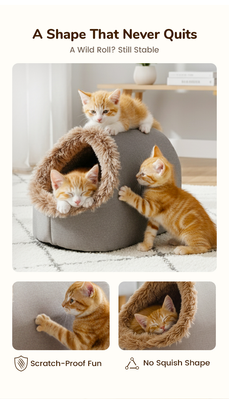✅ Flexible rim lets pets burrow safely. 🛏️💤