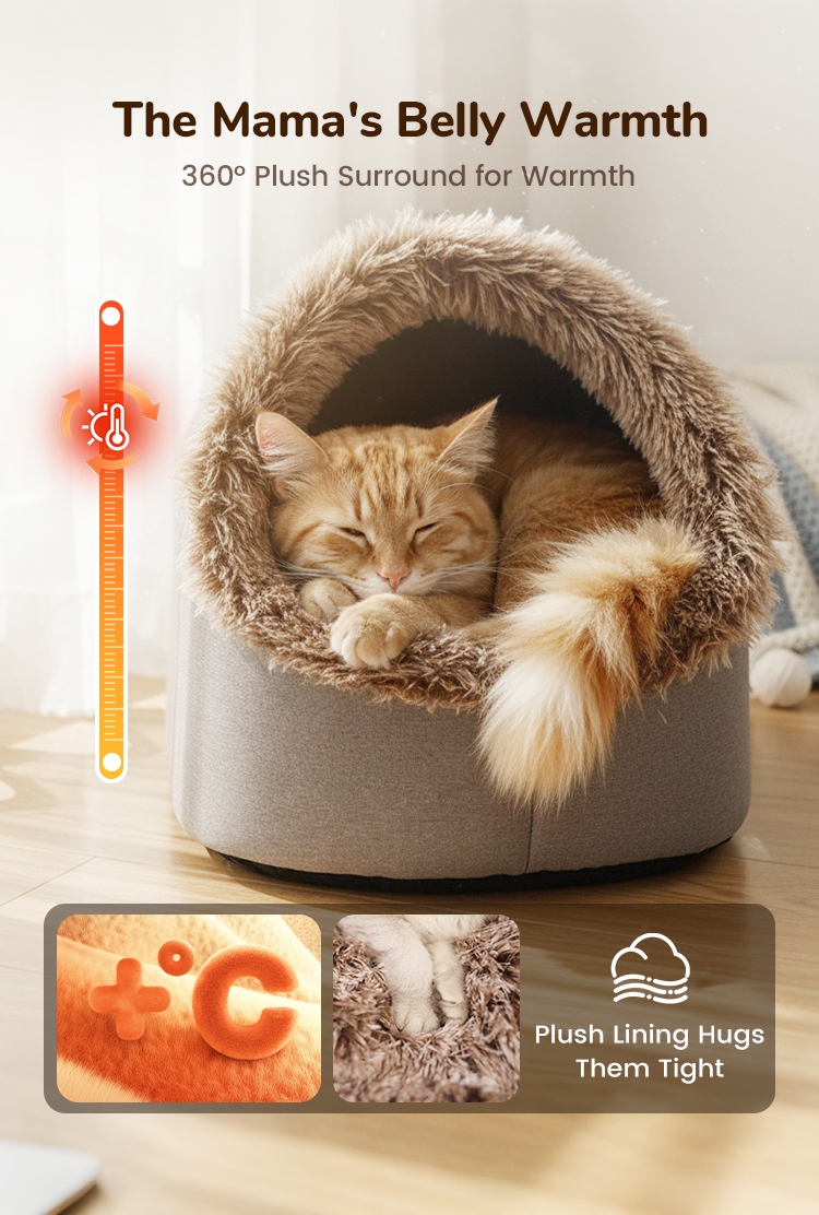 🐾 Our Cozy Cave Bed keeps your pet warm all winter. ❄️